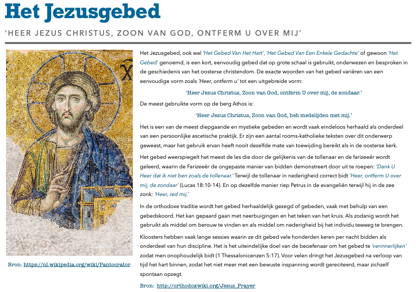 Klik hier voor enige achtergrondinformatie over Het Jezusgebed.