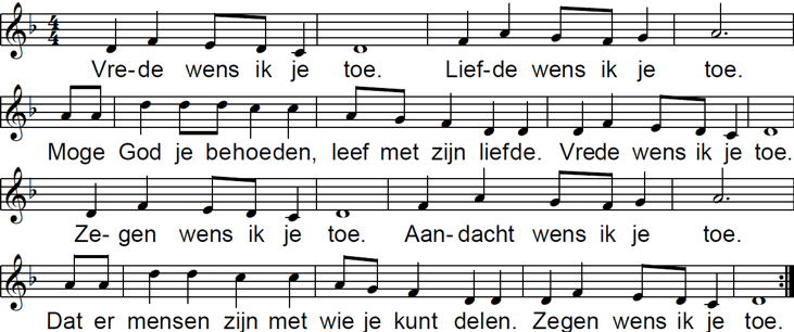 * Stiltemeditatie![]() | * ‘Ik zegen Jou, moge Jij mij zegenen’ Vrij naar Psalm 134:1a,3a | |