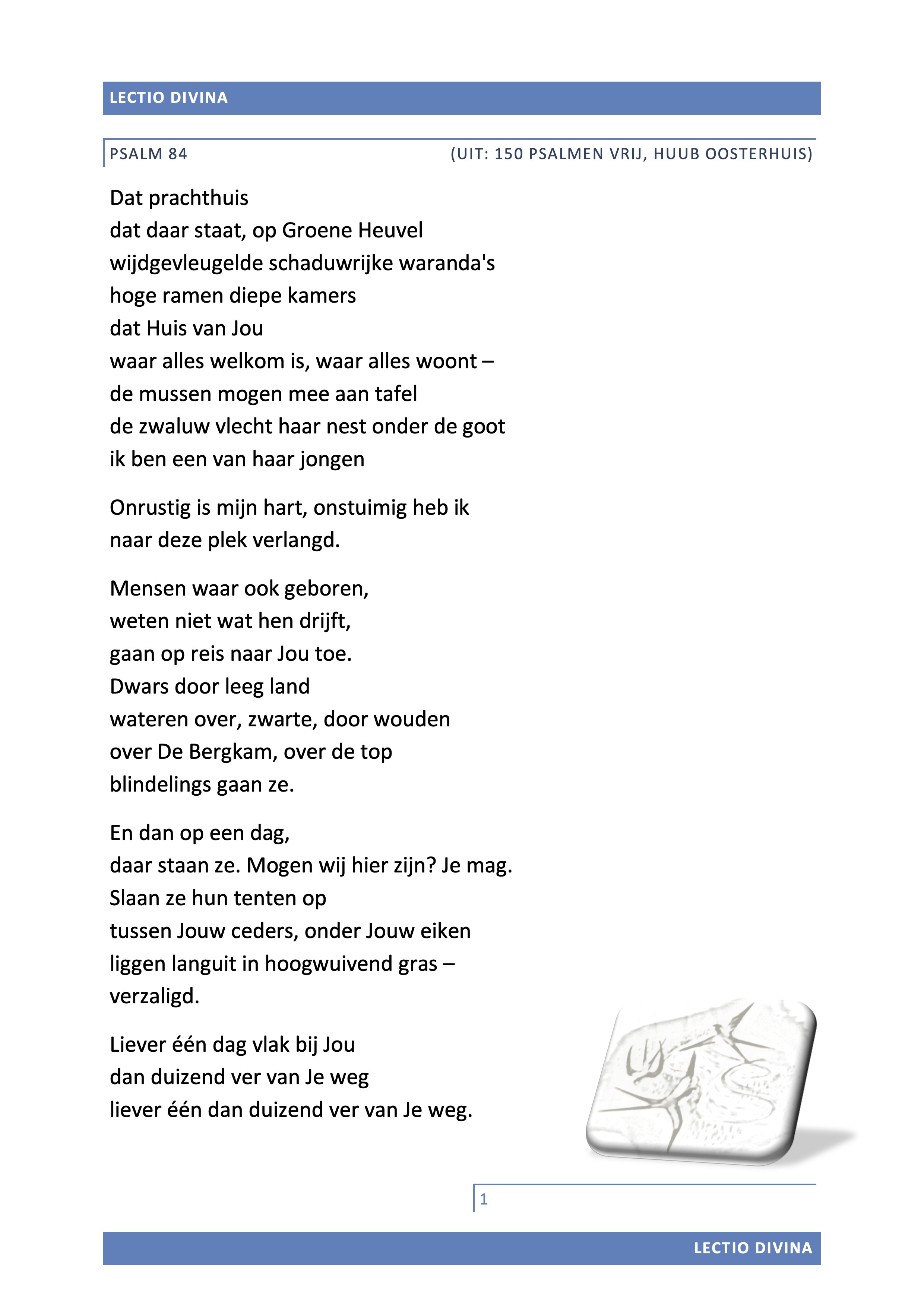 Online-Lectio Divina met het gedicht ‘Dat prachthuis van Jou – Psalm 84‘.
